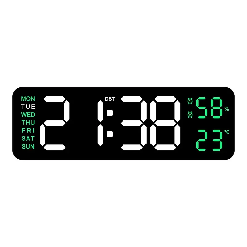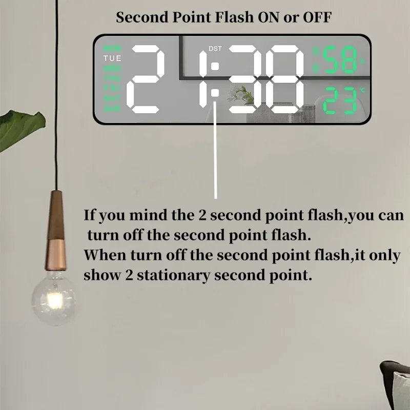 9 Inch Large Digital Wall Clock USB Powered TEMP Humidity Week Auto Dimmer DST Table Clock 12/24H Electronic LED Alarm Clock