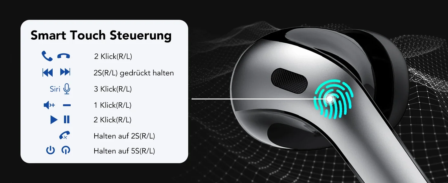 - Control: Touch-sensitive controls for music, calls, volume, and voice assistant