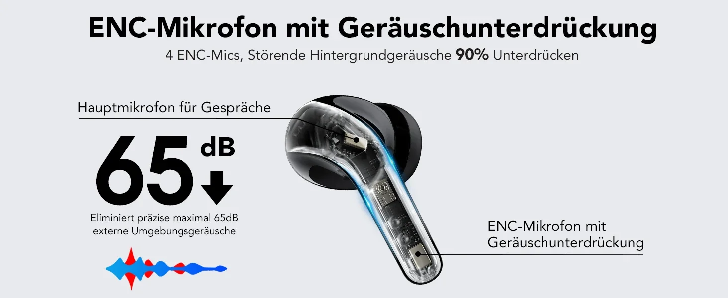 - Noise Reduction: CVC for calls (no active noise cancellation)
