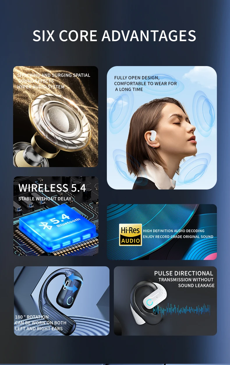 Experience high-performance audio with VAORLO’s latest wireless earphones, designed for comfort, durability, and versatility across all your devices, featuring the Bluetooth 5.4 Open Wireless Earphone with 180° Adjustable Ear Hook technology.