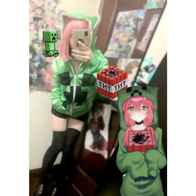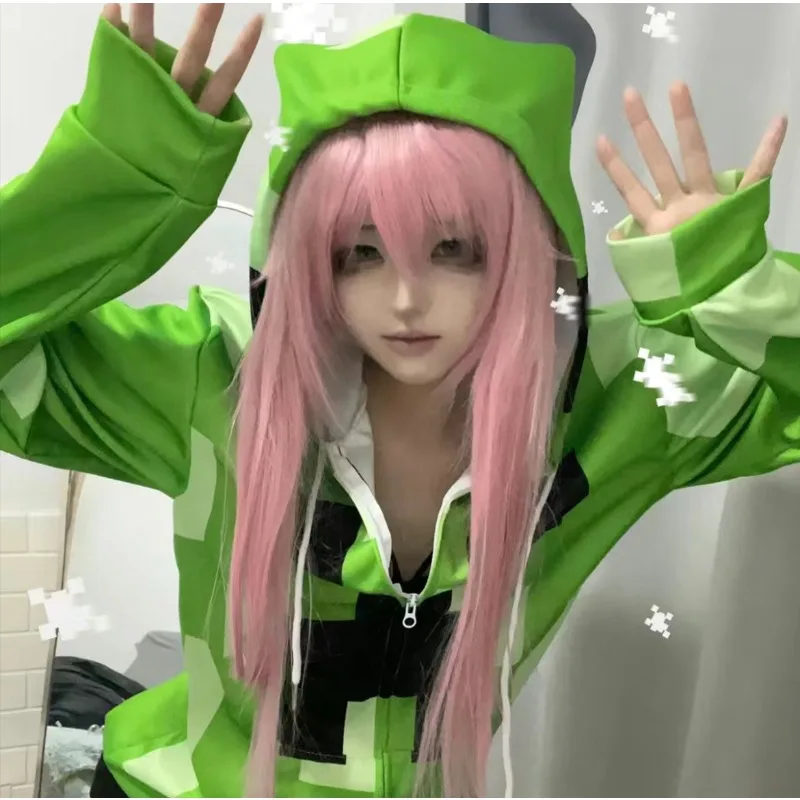💚 Creeper-Inspired Game Cosplay Coat – Women’s Green Costume Set for Halloween, Carnival & Daily Wear