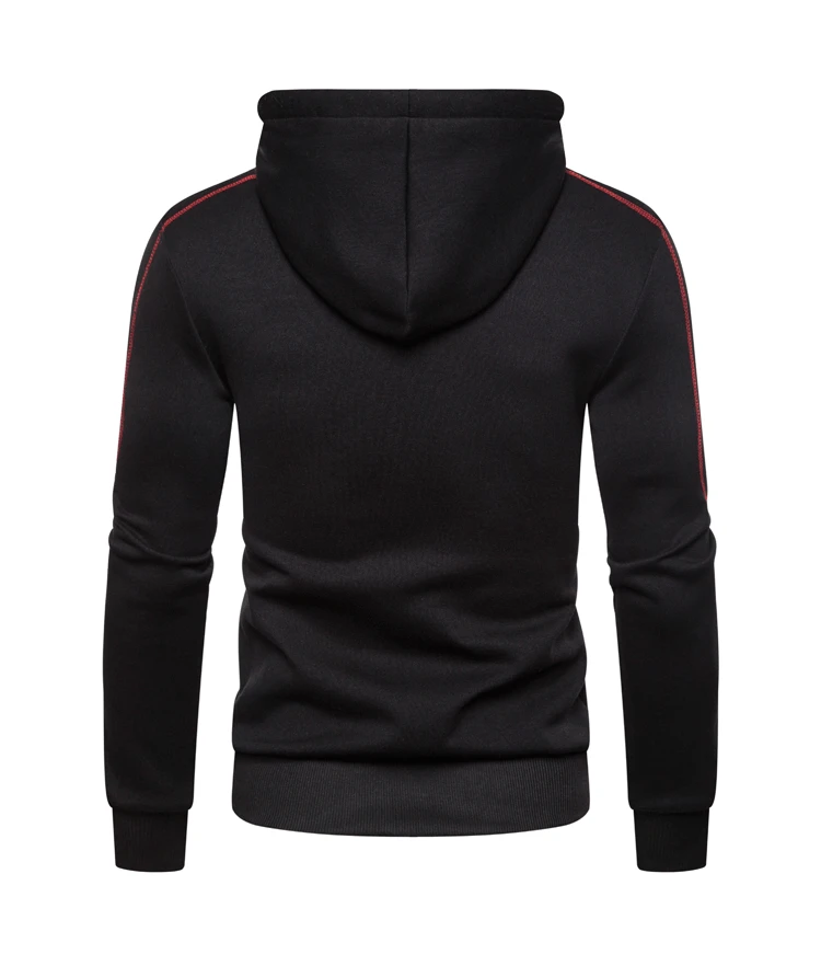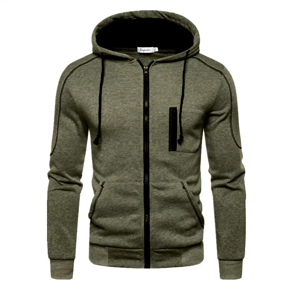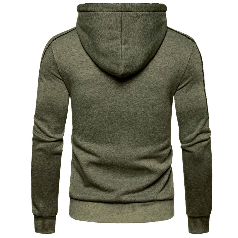 Stay warm and look sharp with this men’s fleece hoodie, perfect for autumn and winter. Made from durable polyester knit, it features a full-length zipper, a classic O-neck collar, and a hood for extra comfort. The color block design comes in black, white, army green, and red—giving you bold style with everyday versatility.
