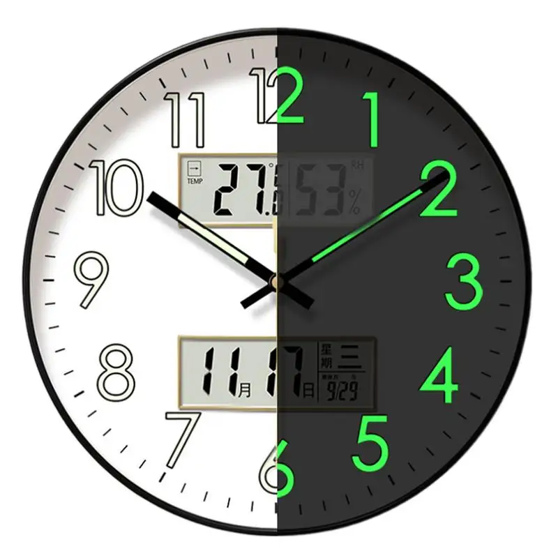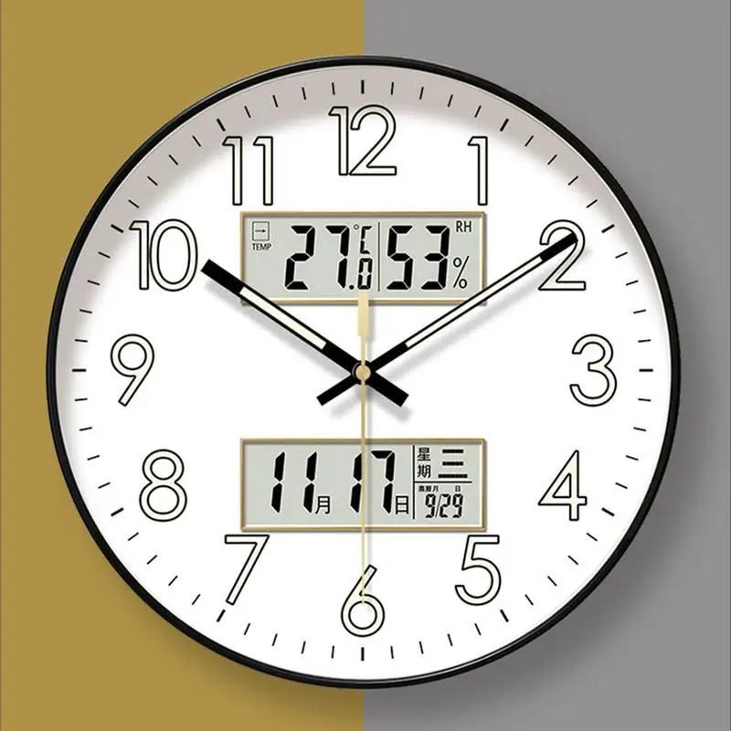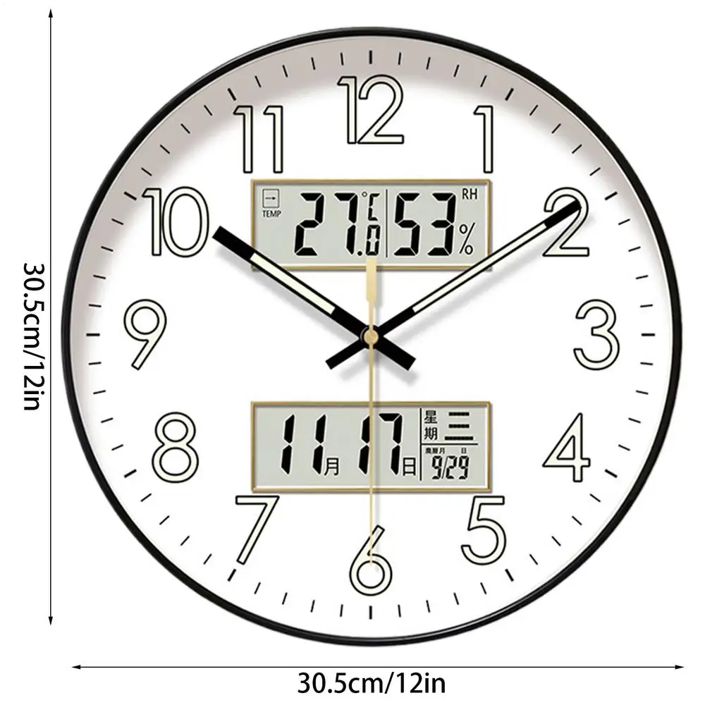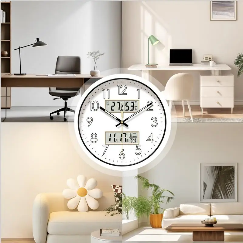 🕒 Modern Silent Wall Clock with Digital Display & Night Glow