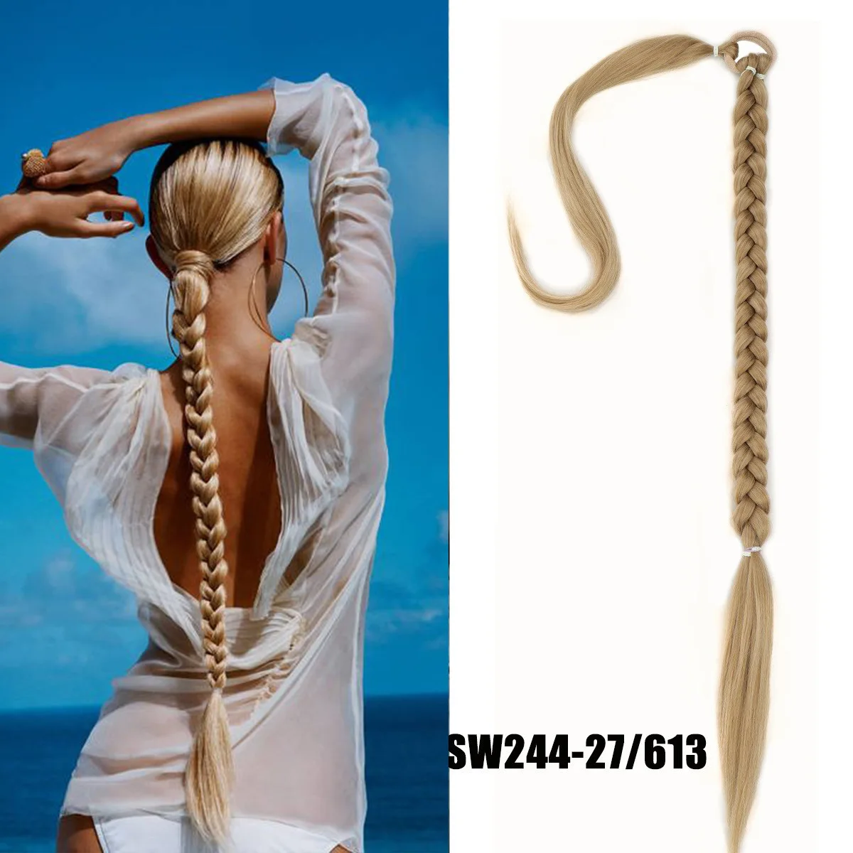 Product Name: 32‑Inch Synthetic Ponytail Wig Extensions – Long Straight Boxing Braids – Black, Blonde, Brown