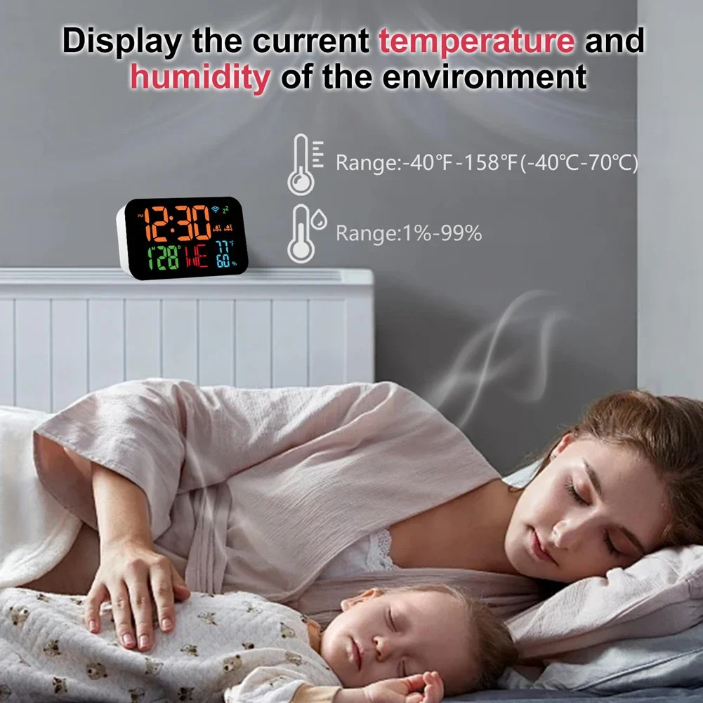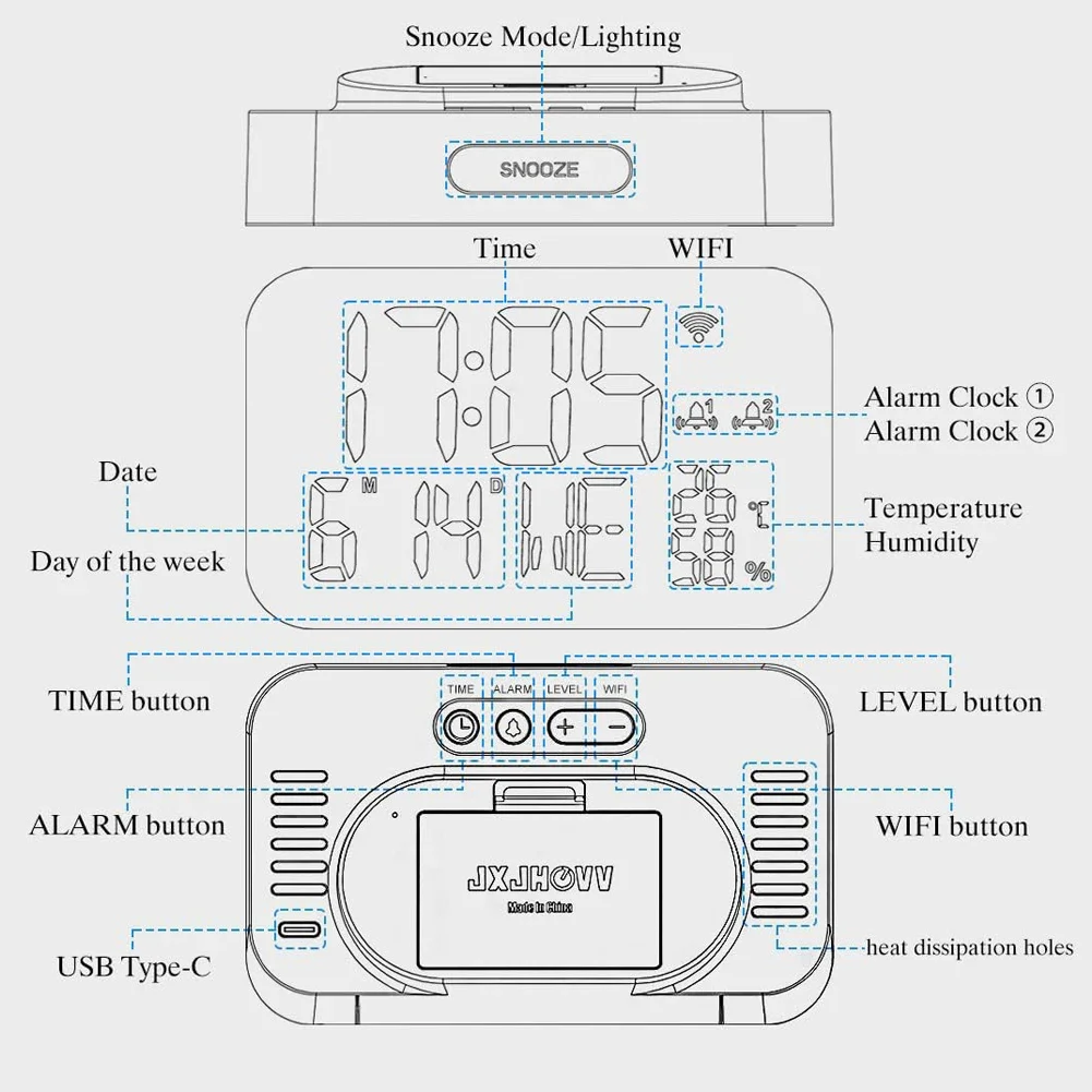 The large LED screen offers a 120° wide viewing angle for easy readability from multiple directions. Choose from four brightness levels to suit your environment, with automatic dimming at night to protect your eyes. - Smart Time & Alarm Management: