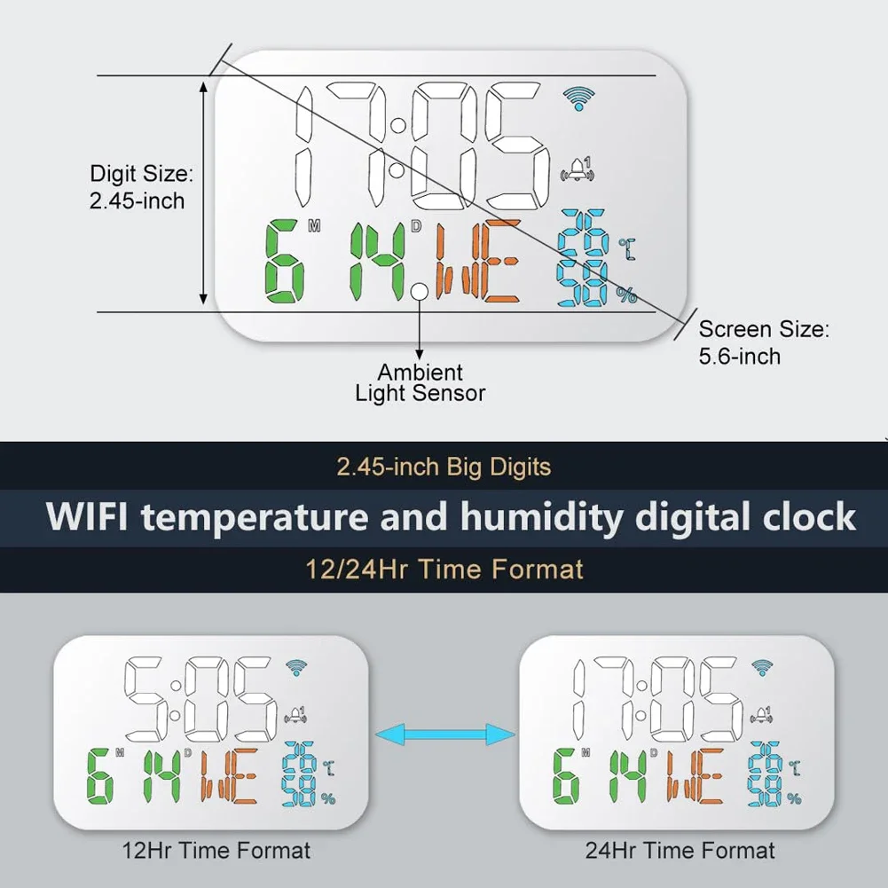 Syncs time automatically when connected to WIFI. Set up to two alarms with snooze options to match your routine. USB-powered and suitable for both desktop placement and wall mounting—ideal for homes, offices, greenhouses, and more. - Modern, Minimalist Design: