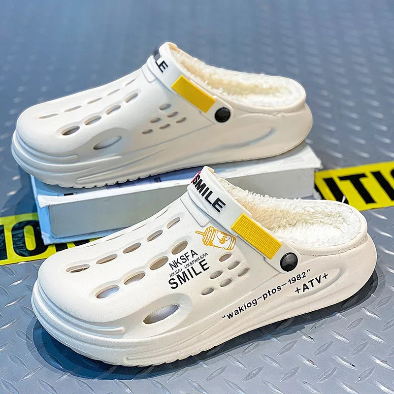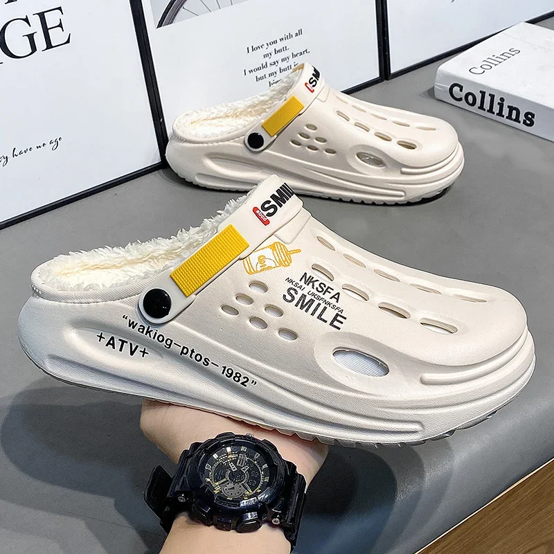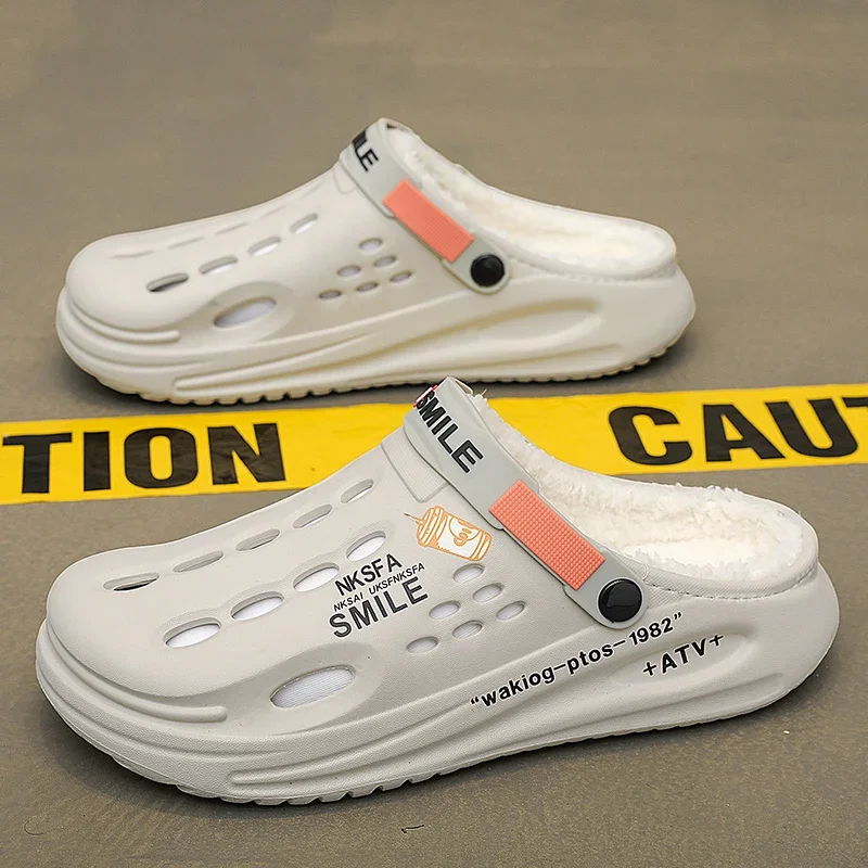 Winter Men’s Warm Furry Slippers – EVA Garden Clogs with Plush Lining for Indoor & Outdoor Comfort