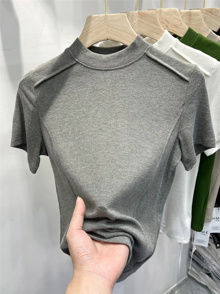 Women’s Short-Sleeve O-Neck Blouse – Casual Korean Style